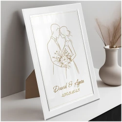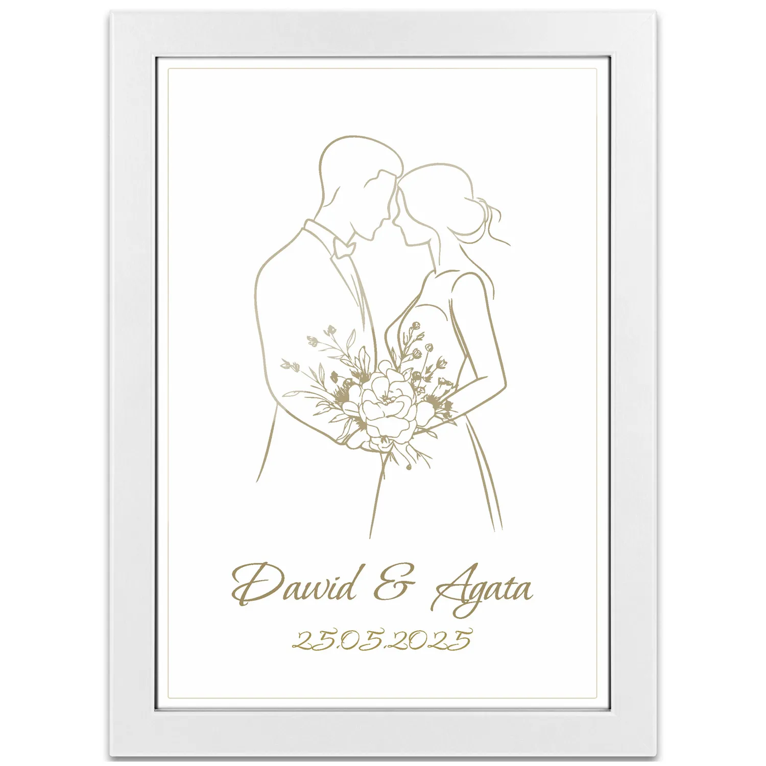 Szukasz wyjątkowego prezentu dla pary młodej lub bliskich obchodzących rocznicę ślubu? Nasz personalizowany obrazek ślubny z minimalistyczną, elegancką grafiką to idealny wybór na każdą romantyczną okazję – ślub, jubileusz, Walentynki czy rocznicę związku.