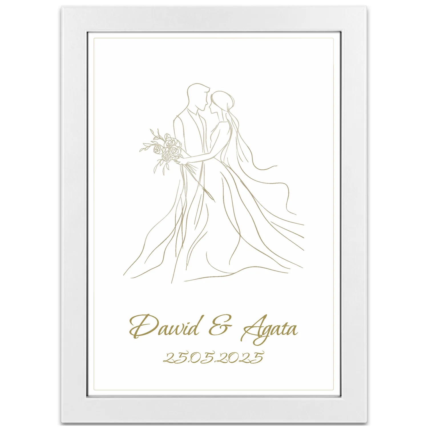 Szukasz wyjątkowego prezentu dla pary młodej lub bliskich obchodzących rocznicę ślubu? Nasz personalizowany obrazek ślubny z minimalistyczną, elegancką grafiką to idealny wybór na każdą romantyczną okazję – ślub, jubileusz, Walentynki czy rocznicę związku.