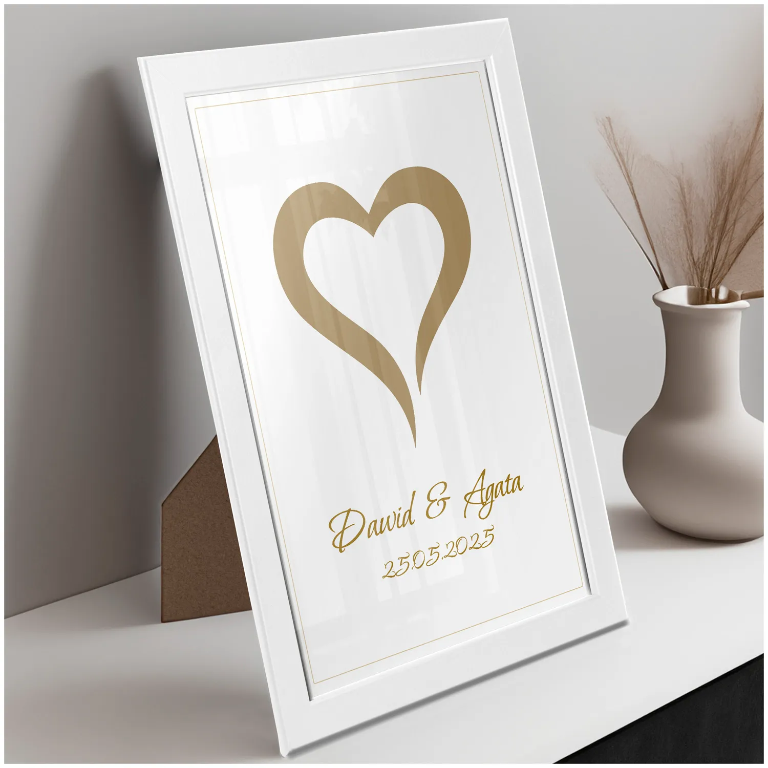 Szukasz wyjątkowego prezentu dla pary młodej lub bliskich obchodzących rocznicę ślubu? Nasz personalizowany obrazek ślubny z minimalistyczną, elegancką grafiką to idealny wybór na każdą romantyczną okazję – ślub, jubileusz, Walentynki czy rocznicę związku.