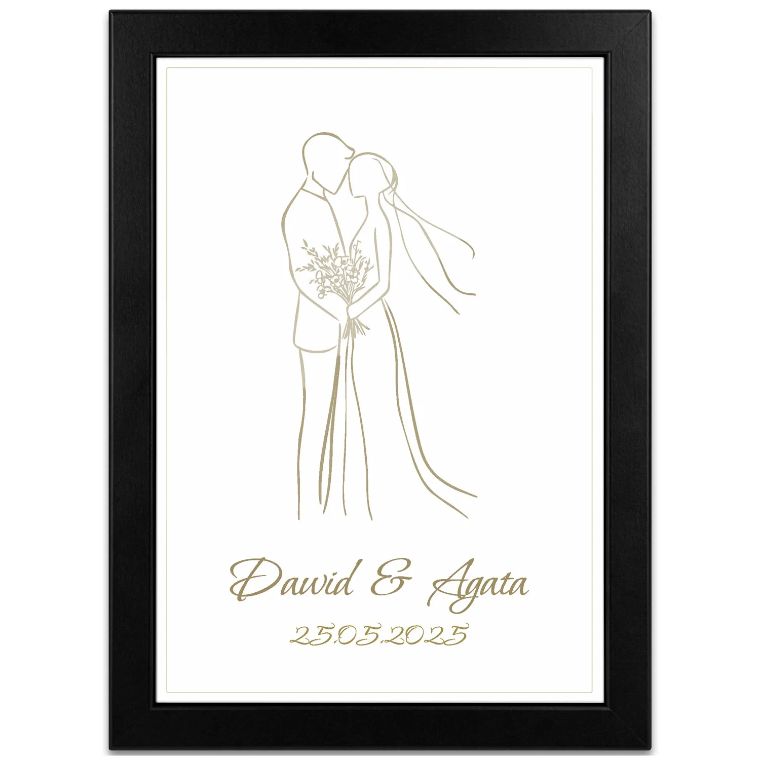 Szukasz wyjątkowego prezentu dla pary młodej lub bliskich obchodzących rocznicę ślubu? Nasz personalizowany obrazek ślubny z minimalistyczną, elegancką grafiką to idealny wybór na każdą romantyczną okazję – ślub, jubileusz, Walentynki czy rocznicę związku.
