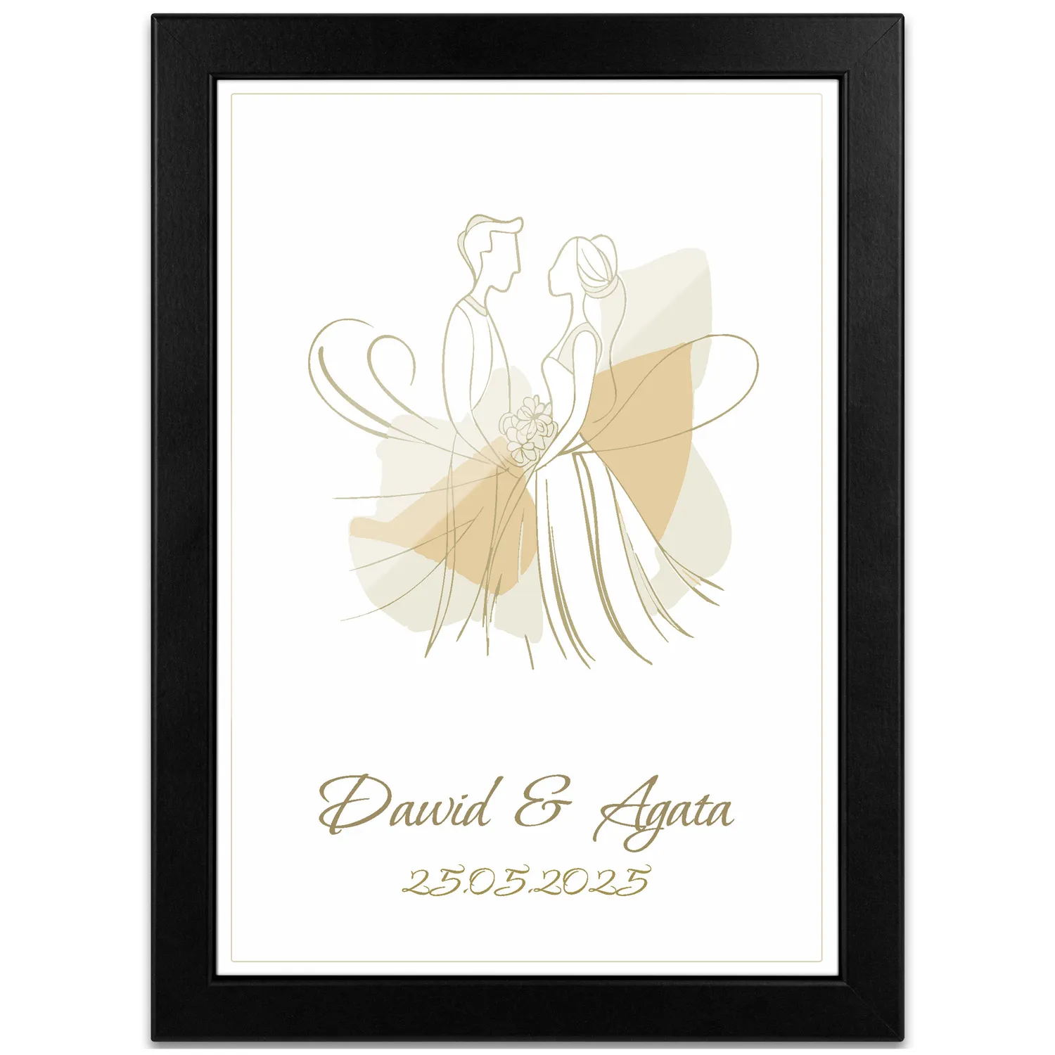 Szukasz wyjątkowego prezentu dla pary młodej lub bliskich obchodzących rocznicę ślubu? Nasz personalizowany obrazek ślubny z minimalistyczną, elegancką grafiką to idealny wybór na każdą romantyczną okazję – ślub, jubileusz, Walentynki czy rocznicę związku.