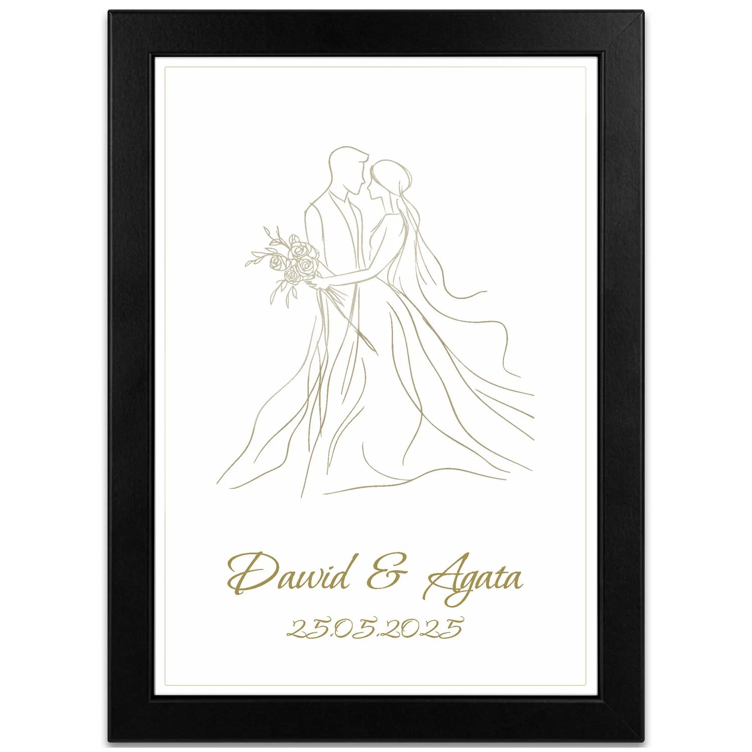 Szukasz wyjątkowego prezentu dla pary młodej lub bliskich obchodzących rocznicę ślubu? Nasz personalizowany obrazek ślubny z minimalistyczną, elegancką grafiką to idealny wybór na każdą romantyczną okazję – ślub, jubileusz, Walentynki czy rocznicę związku.