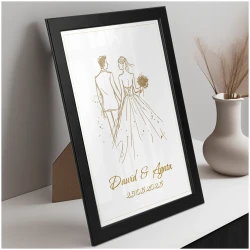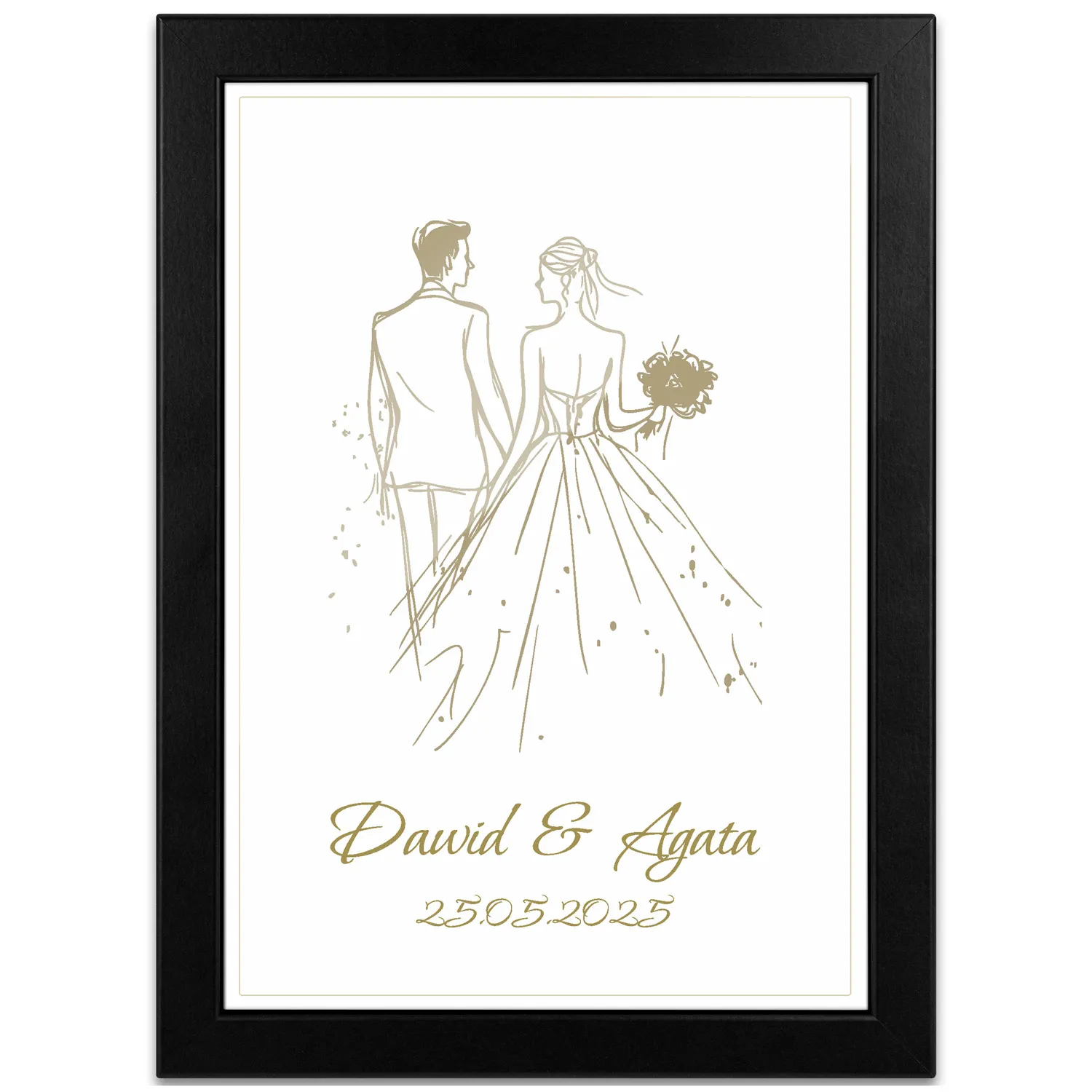 Szukasz wyjątkowego prezentu dla pary młodej lub bliskich obchodzących rocznicę ślubu? Nasz personalizowany obrazek ślubny z minimalistyczną, elegancką grafiką to idealny wybór na każdą romantyczną okazję – ślub, jubileusz, Walentynki czy rocznicę związku.