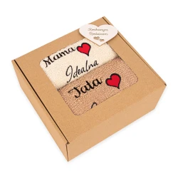 Prezentowany zestaw to idealny sposób na wyrażenie swojej wdzięczności i uznania dla najważniejszych osób w Twoim życiu. Zestaw składa się z dwóch eleganckich miękkich i przyjemnych w dotyku ręczników, które z pewnością przydadzą się podczas codziennych czynności. Ręczniki są ozdobione subtelnym napisem "Mama Idealna/ Tata Idealny", co dodaje im jeszcze więcej uroku. Ten zestaw to nie tylko praktyczny prezent, ale też wyraz szacunku i miłości dla rodziców.