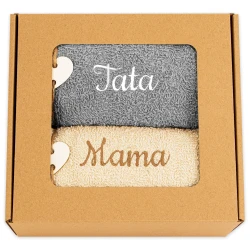 Szukasz eleganckiego, a zarazem praktycznego prezentu z okazji Dnia Mamy i Taty? Ten zestaw z pewnością zachwyci Twoich rodziców! Zawiera dwa wyjątkowe ręczniki z subtelnym haftem "Mama" i "Tata" – to piękny sposób, by wyrazić wdzięczność i uczcić ich miłość oraz codzienny trud.