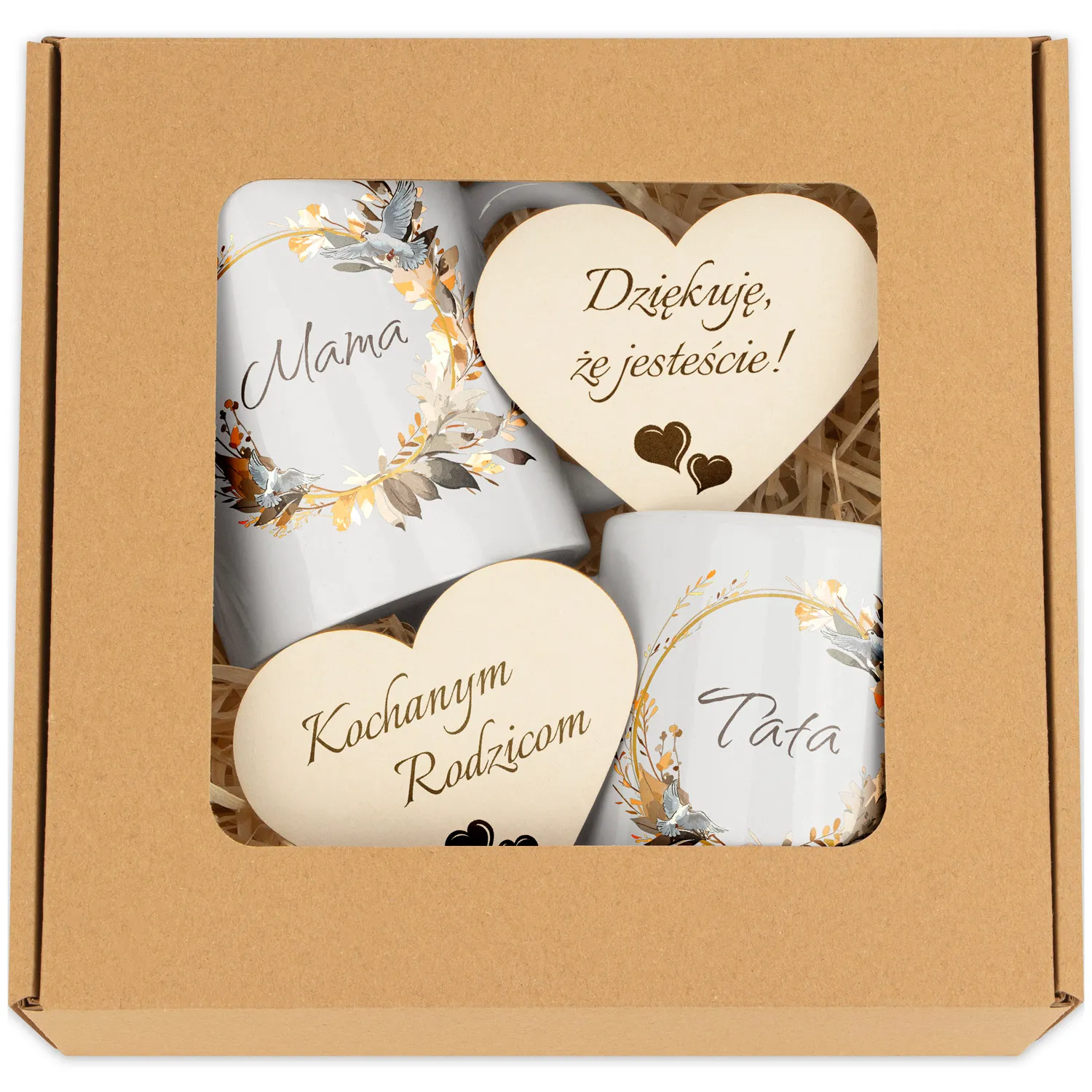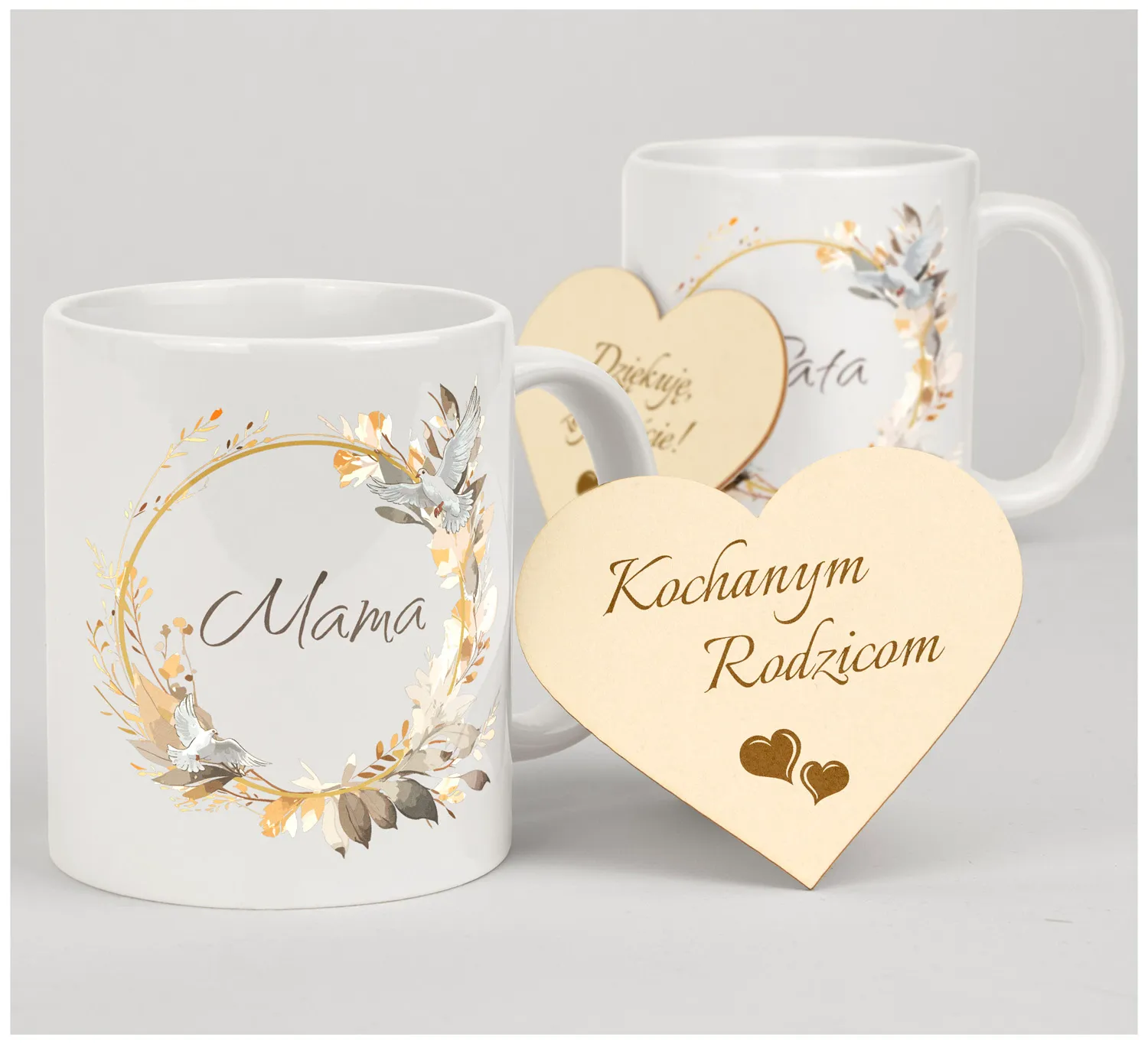 Prezentowany zestaw to idealny sposób na wyrażenie swojej wdzięczności i uznania dla Rodziców - najważniejszych osób w Twoim życiu. Zestaw składa się z dwóch eleganckich kubków oraz dwóch grawerowanych serc. Kubki są ozdobione subtelnym napisem "Mama / Tata", co dodaje im jeszcze więcej uroku. Ten zestaw to nie tylko praktyczny prezent, ale też wyraz szacunku i miłości dla rodziców.